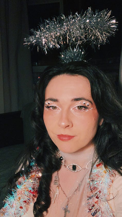 We had a Halloween party and I dressed up as a ‘biblically accurate angel,’ sticking googly eyes to my face and wings. Because not all angels in the Bible were guys with wings. Some were EYES WITH WINGS.