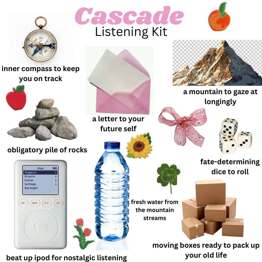 Fun fact: the word ‘cascade’ features in three different songs in this album. Because ‘cascade’ is the way the sediment tumbles down the mountain, but also the Cascades are a mountain range (of volcanoes! some extinct, some not) in the Pacific Northwest, where two of the album’s stories take place.